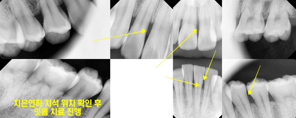 치석이 구강 곳곳에 쌓여있는 것으로 보아