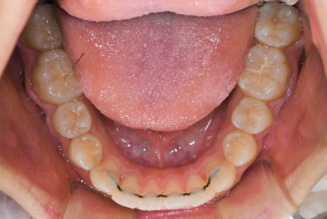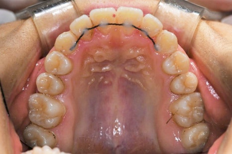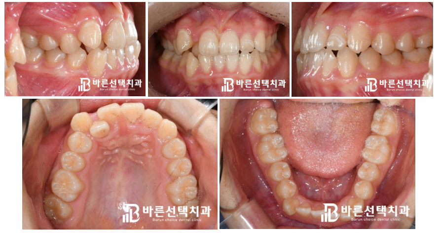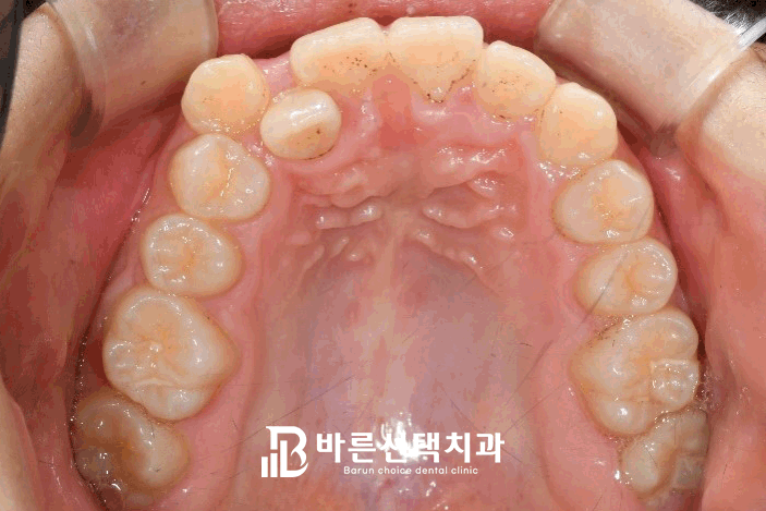 그리고 앞니 하나는 반대로 교합되는 것을 알 수 있습니다.
